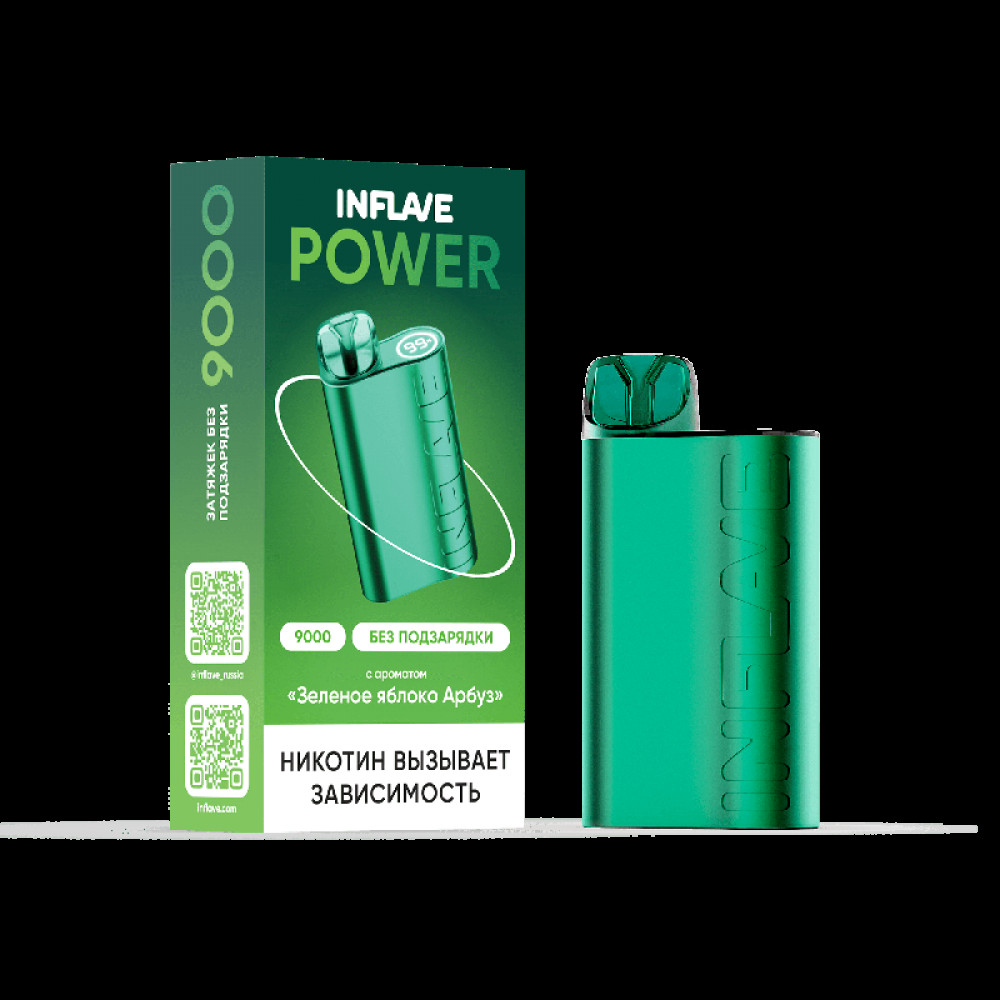 Электронная сигарета INFLAVE POWER 9000 затяжек Зеленое Яблоко Арбуз - купить в Струнино